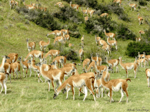 El guanaco abunda en la Patagonia y sus amplias pampas. Aunque no son altiplánicas, sus condiciones latitudinales se asemejan a los ecosistemas de altura. Su vegetación se vincula a la propia de la Puna atacameña y a los pastizales de las grandes montañas del centro del país.
